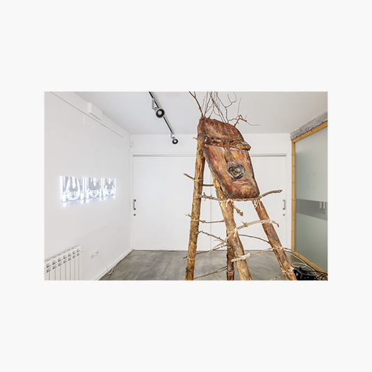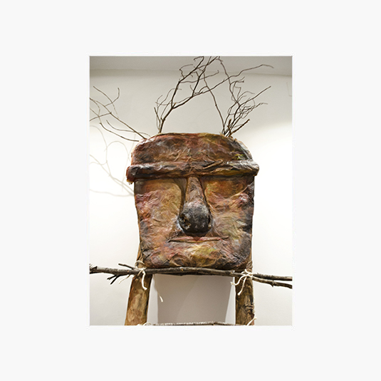 Instalación escultura, papel kraft, cartón, ramas de árboles, lanas y pintura acrílica. Vídeo duración 8:18 min, diseño sonoro interpretado especialmente para la obra